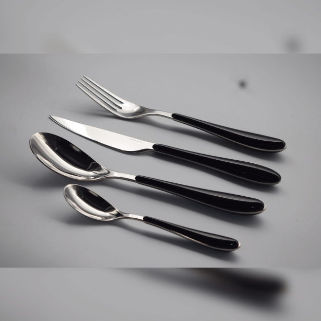 Casa Bugatti GIOIA- 24 Piece Black Acrylic Handle – Flatware/Cutlery Set